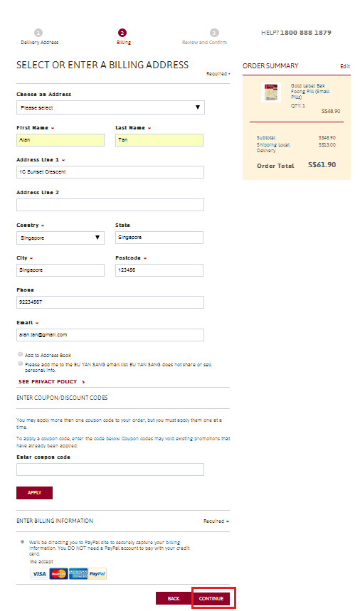 STEP 1- Fill in your delivery address.