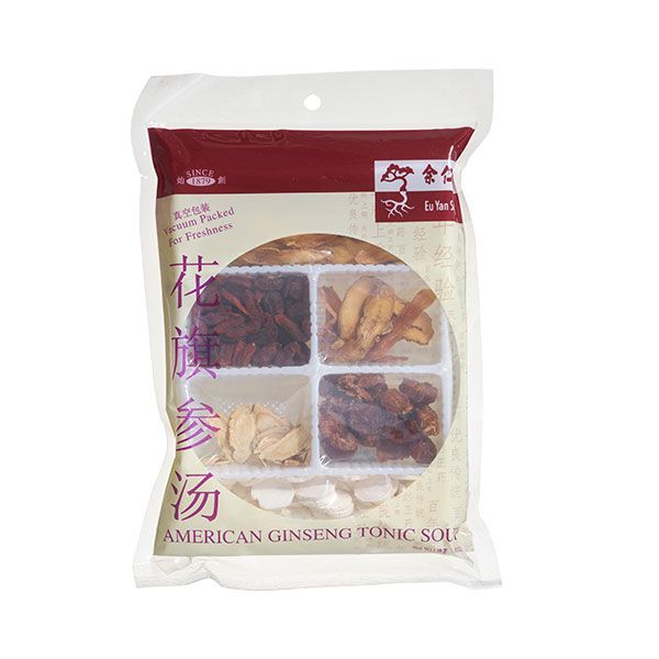 American Ginseng Tonic Soup 花旗参汤: Rhizoma Polygonati Odorati, Rhizoma Dioscoreae, Fructus Lycii, Arillus Longan, Radix Panacis Quinquefolii 玉竹,山药,枸杞子,龙眼肉,西洋参 (1 pack / 包)