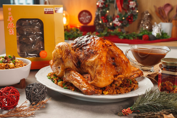 In place of the traditional turkey stuff, we’ve chosen to pair our Herb Butter Stuffed Turkey with a flavourful sweet-savoury glutinous rice stuffing starring Eu Yan Sang’s Wild Morel mushrooms, Lotus Seeds, Lily Bulbs and sweet Dried Longans. Talk about a nutritious rice dish with many health benefits!
